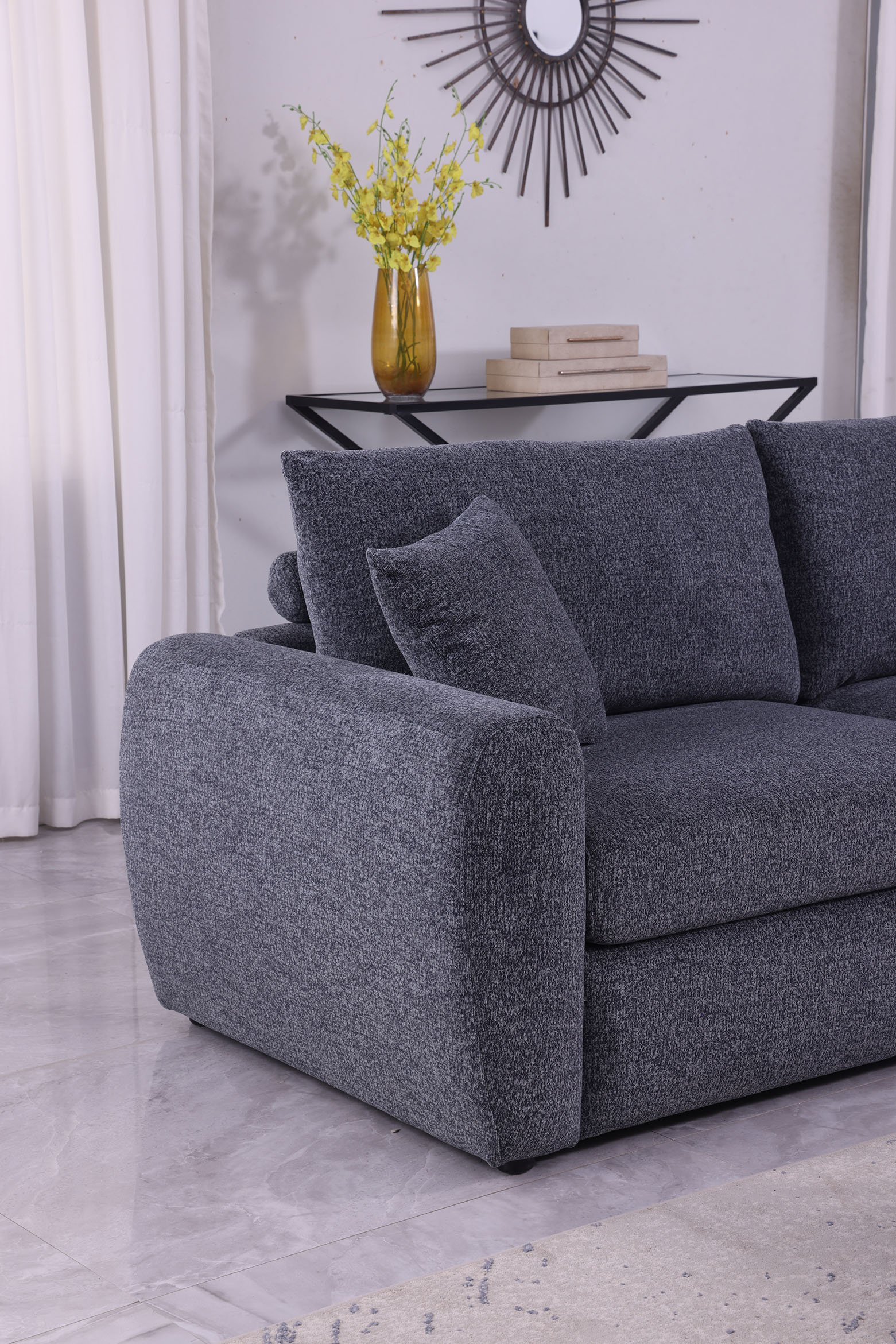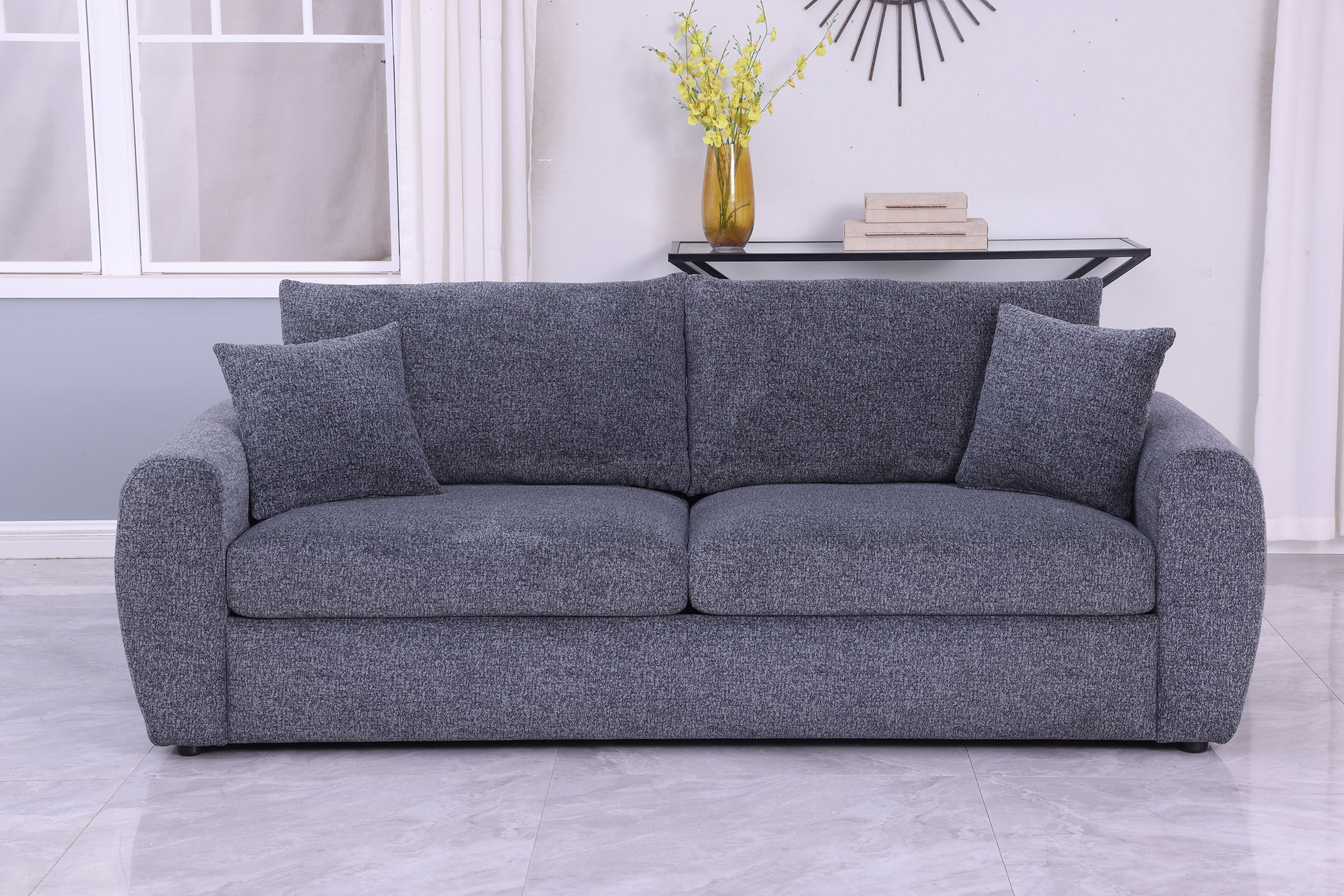 Découvrez ce canapé 3 places au design américain épuré, parfait pour transformer votre salon. Revêtu de tissu chenille gris doux et confortable, il allie élégance minimaliste et praticité. Son cadre en bois d'eucalyptus robuste et son rembourrage en mousse de fibres garantissent un confort moyen-doux idéal pour les moments de détente en famille. Les accoudoirs carrés et le dossier matelassé ajoutent une touche de sophistication. Idéal pour un usage quotidien dans votre espace de vie principal.
